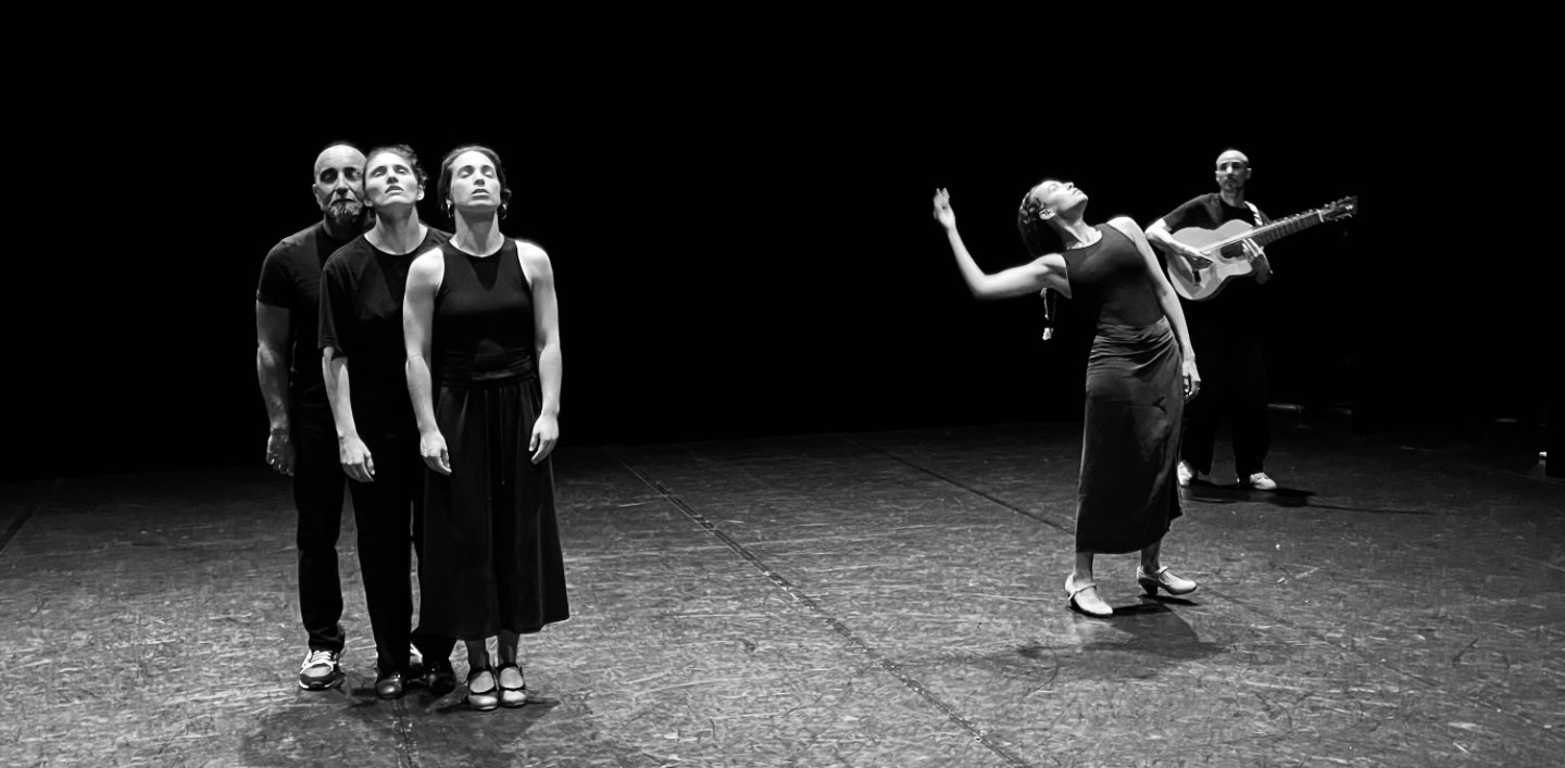 Elle est une danseuse flamenco aux ouvertures des plus contemporaines. Il est un virtuose de la guitare flamenca et du théorbe. Après une première approche du Stabat Mater, en duo, avec la création Stans en 2024, Ana Pérez et José Sanchez développent une écriture pour 3 corps, 1 voix et 1 musicien. Ensemble, les cinq interprètes traversent les états du Stabat Mater, poème moyenâgeux évoquant la figure d’une femme restée debout face à son supplice, la perte de son enfant. Ce corps meurtri mais droit, incarne à la fois les plus grandes peines et la dignité, un double élan immanent à la danse flamenca. Une version profane, musicale, chantée, parlée et chorégraphiée, où les corps, couleurs sonores et rythmes se dupliquent, s’entremêlent et se chevauchent pour un voyage entre les styles et les époques. Un flamenco revivifié par la spiritualité profonde de cette hymne mariale et par la puissance du féminin.